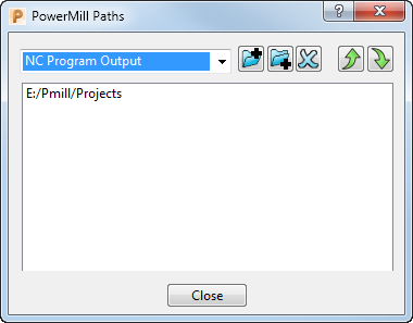 可以使用“PowerMill 路径”对话框定义 NC 程序输出文件的位置。单击“文件”选项卡 >“选项”>“自定义路径”以显示“PowerMill 路径”对话框。