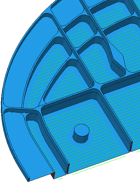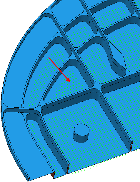 可使用“平行精加工”页面创建刀具路径,方法是:获取曲线在边界内的参考线,然后将这些曲线中的点投影到模型。