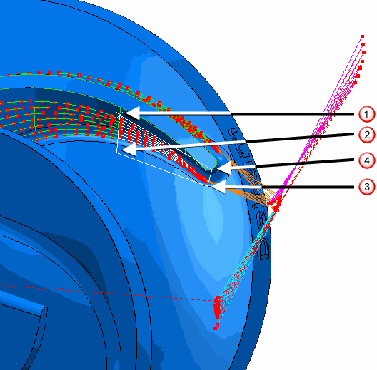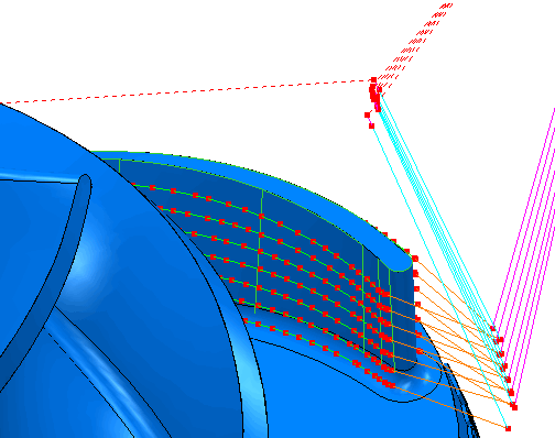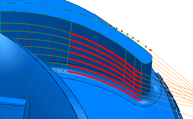 - 查看叶片刀具路径的圆倒角,然后单击“刀具路径”选项卡 >“显示”面板 >“显示”>“点”。