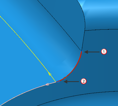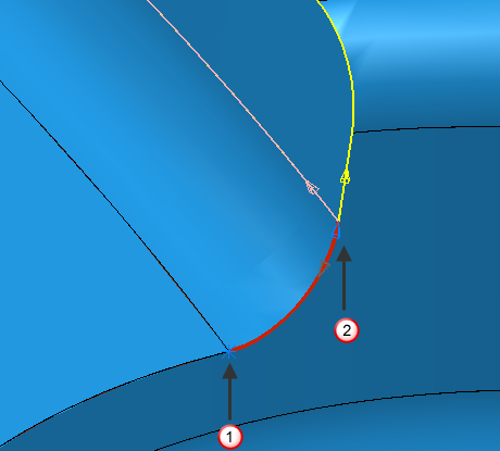“创建复合曲线”工具栏适用于曲线(不适用于曲面)。如果曲面处于关注区域中,则它会选择曲面边缘曲线并对此曲线进行操作。此边缘曲线始终是完整的闭合环,完全围绕着曲面的周边。
