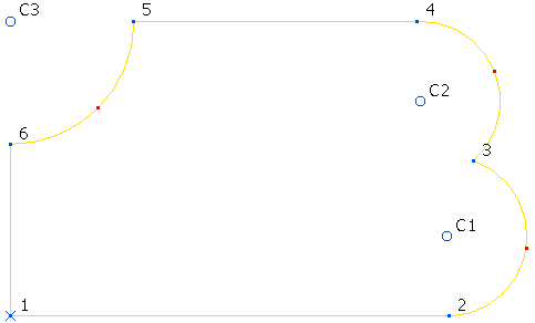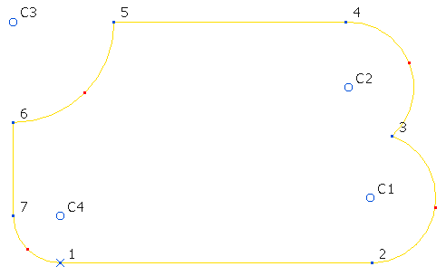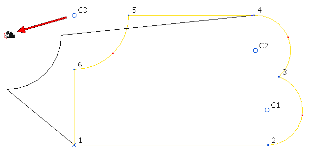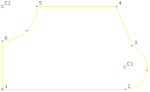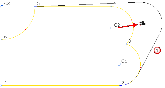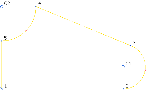 系统会在点 3 与 4 之间将圆弧替换为直线,并对圆弧重新编号(因此 C3 会变为 C2)。