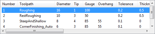 如果编号前面带有星号 *,则表示已在此对话框的下半部分中编辑了此刀具路径的刀具编号。