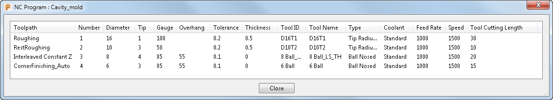 您可以显示 NC 程序中使用的所有刀具路径,以及用于创建刀具路径的参数。
