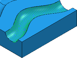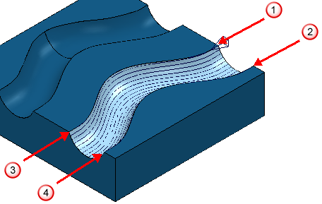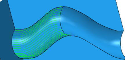 参数参考线限界 - 选择此项可使用“开始”和“结束”域来限制加工区域。此选项仅适用于“曲线投影”精加工。以下示例显示“开始”为 0、“结束”为 0.5 的限界: