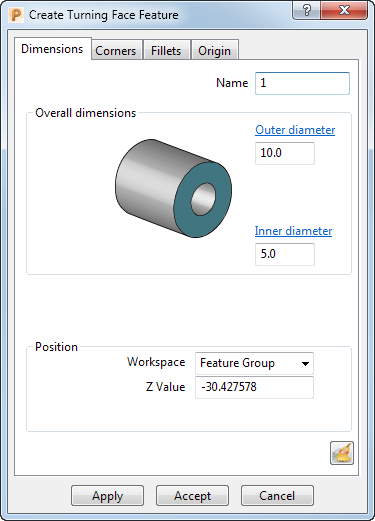 外径 - 输入值以指定特征的外径。
