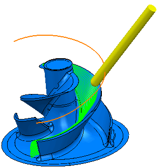 - 叶盘 - 选择此项时,您可以将用于加工叶盘和叶轮的刀轴方向设置应用于首选加工策略。可使用“刀轴仰角”区域指定初始目标刀轴: