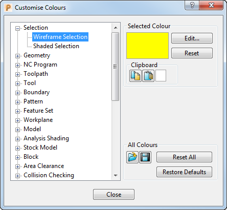 全部重设 - 将颜色更改为您启动 PowerMill 时选择的颜色。