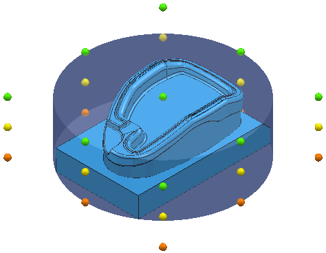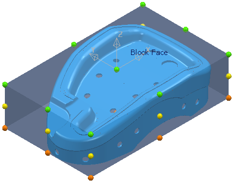 如果毛坯不是矩形毛坯,则系统会在毛坯四周放置边界方框,并在该边界方框上放置手柄: