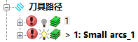1. PowerMill 将会查找任何问题,并创建突出显示问题区域的独立刀具路径(在本例中为 1 : Small arcs_1)。