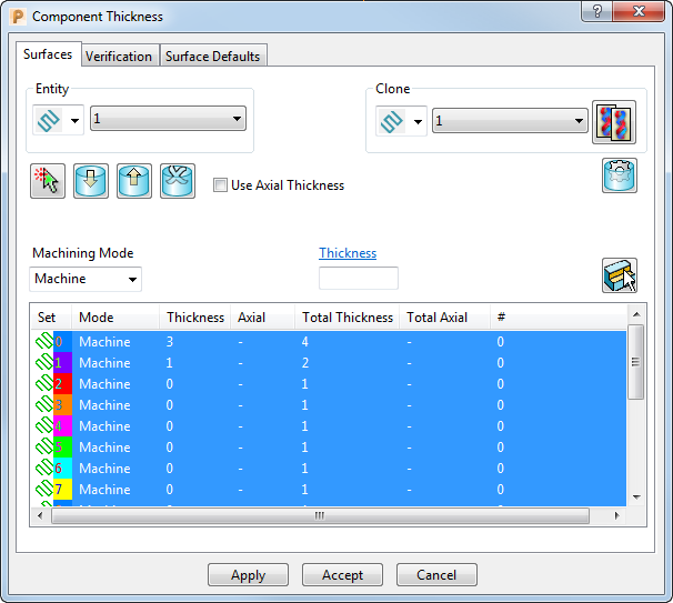 加工模式 - 选择一个选项以指定应用部件余量的方式。您所做的选择会确定在“余量列表控制”表的“模式”列中显示的颜色。从以下选项选择: