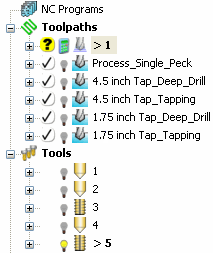 展开刀具路径可查看创建的钻孔方法、刀具路径和创建的刀具