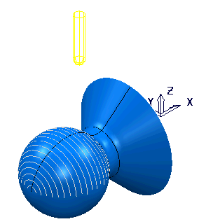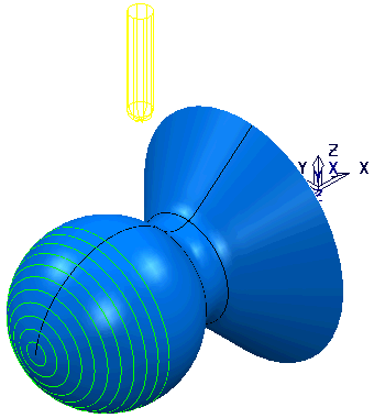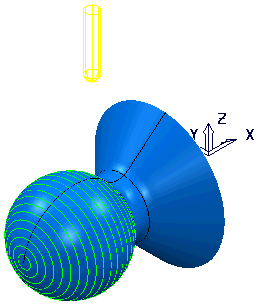 - 在图形窗口中,选择球形曲面,然后在“曲面投影精加工”对话框中单击“计算”以重新计算刀具路径。