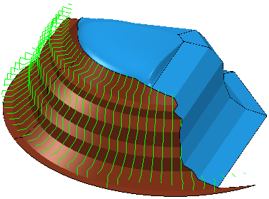 使用“曲面投影精加工”页面可创建属于一种驱动曲面加工的刀具路径。您必须选择参考曲面,该策略才起作用。系统会在该参考曲面上创建参考线。参考曲面不一定是要加工的曲面,可以是构造曲面。