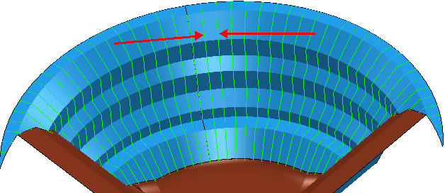 选择“向内”会使参考线点在曲面法线方向远离曲面,从而在曲面法线的反方向投影曲面参考线。