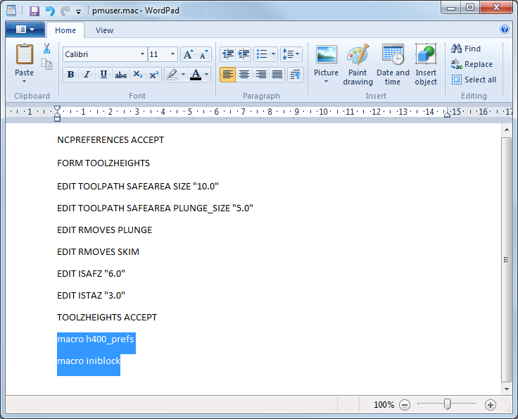 您可以创建执行单个操作的小宏,然后在较大的宏中调用这些小宏。本例说明如何向 pmuser 宏添加 h400_prefs 宏和 iniblock 宏。