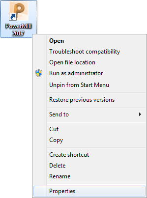 - 右键单击PowerMill 快捷方式并选择“属性”。