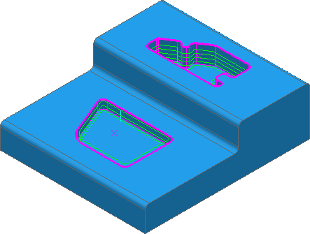 使用“特征型腔残留轮廓”策略,可在使用区域清除策略粗加工型腔后,在型腔参考线周围创建刀具路径。使用此策略可以在不同的 Z 轴层上加工多个型腔。