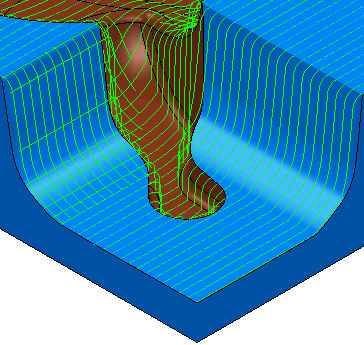 这将创建一条贯穿整个模型的平行路径以及与该路径垂直的第二条路径,从而仅加工比“浅滩角”角度更小的模型区域。