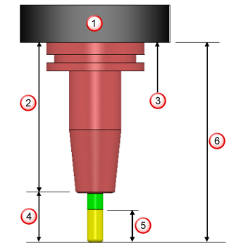 “标距长度”是在夹持安装在机床上时,刀具和夹持部件的总长度。其测量方式是从刀尖到标距面 - 即主轴的接地面。