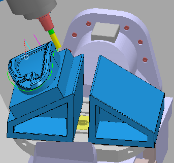 万向锁定是多轴机床的特定配置,当刀轴因一个或多个刀具路径点的位置而与至少一个旋转轴对齐时,会出现此问题。此配置会导致不必要的移动,原因是,在靠近万向锁定位置时,刀轴的微小调整可能需要旋转轴发生较大变化。