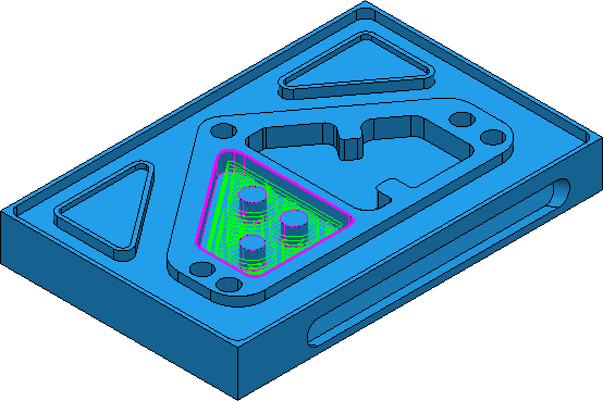 使用“特征区域清除”策略可从 2.5D 零件中快速去除材料。偏移刀具路径适合于型腔底部,而平行加工刀具路径通常用于开放的零件。Vortex 旋风铣加工可提高进给率,同时维持曲面质量和刀具使用寿命。