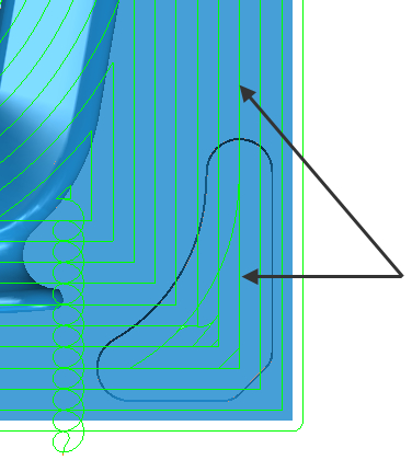 径向余量 - 输入刀具的径向偏移。进行 2.5 轴或 3 轴加工时,输入正值可在垂直壁留下材料。