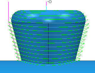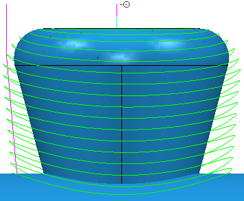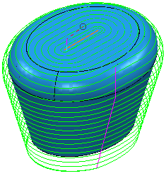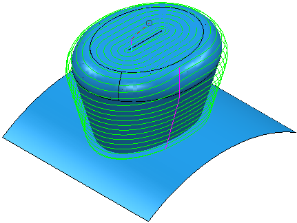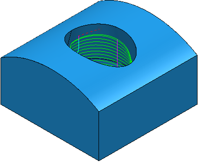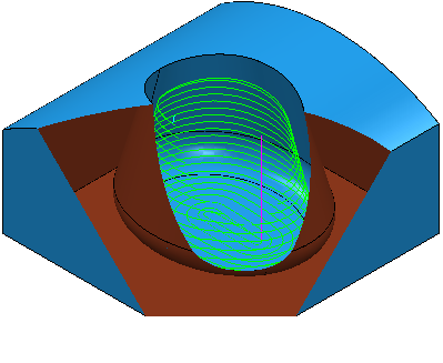 使用“参数螺旋精加工”页面可创建一个螺旋刀具路径。该刀具路径从指定参考线开始呈螺旋形,并在指定曲面终止。