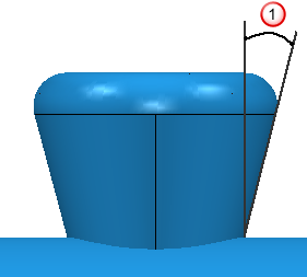 倒扣 - 输入一个角度,以指定相对于“中心曲线”的倒扣。曲线两侧的角度可以不同。在您选择“中心曲线”后,系统将显示曲线方向。如果零件的倾角(测量与垂直线的角度)小于“底切角”,则您可以加工该零件。