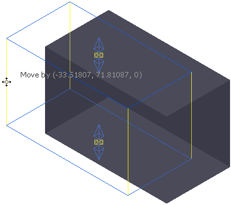 单击并拖动鼠标以移动毛坯。光标旁的文本会显示毛坯的移动幅度(在本例中为“-33.51807, 71.81087, 0”)。
