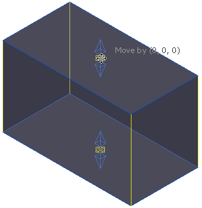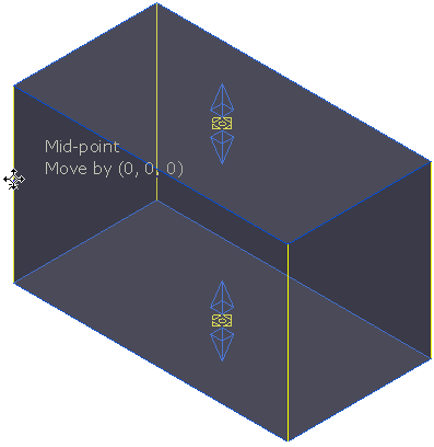 。光标旁的文本会显示您抓取线框的位置(在本例中为“中间点”)以及毛坯的移动幅度(在本例中为“0, 0, 0”)。
