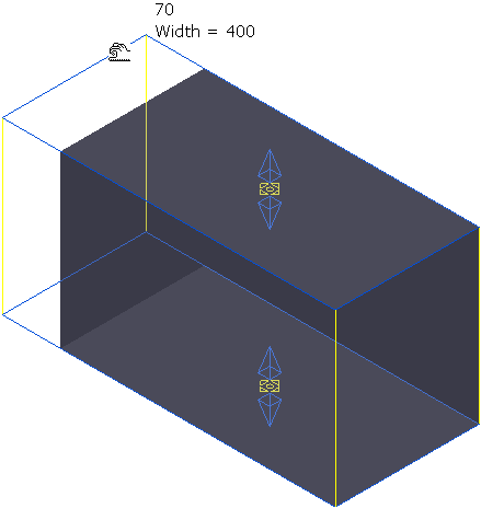 单击并拖曳鼠标可更改宽度。光标旁的文本会显示当前宽度(在本例中为 400)以及宽度增量(在本例中为 70)。状态栏将显示光标的坐标