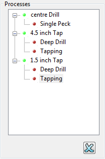 您已创建一种“钻孔方法”,其钻孔处理可在模型上钻取和攻螺纹两种大小的孔。展开“钻孔方法”对话框上的“处理”可查看它们。