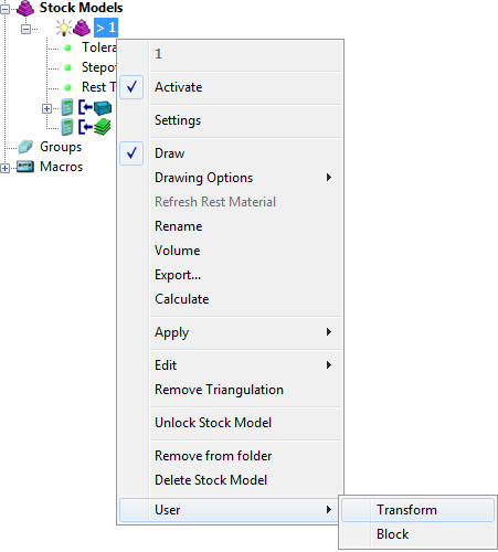 对于 PowerMill 条目自定义菜单,从任何条目关联菜单中选择“用户”即可查看您的自定义菜单命令。