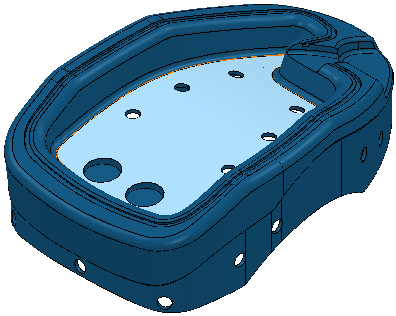 创建流线刀具路径时,系统将会加工镶嵌参考线内部的区域。但是,如果模型带孔,则此区域可能会不符合您的期望。本例采用 Examples 文件夹中的 5axis_with_holes.dgk 模型以及一块毛坯和一把 5 mm 的球头刀。