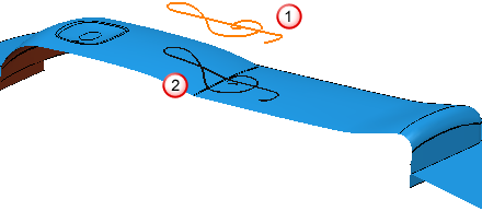 - 选择此项可将已选参考线沿刀轴投影到零件上。沿刀轴查看时,整条参考线都必须包含在零件中。