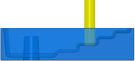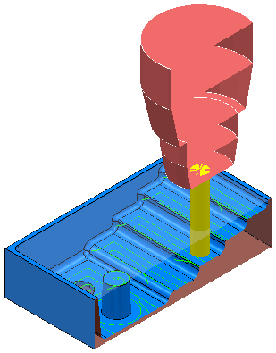 本例说明如何使用“动态截面”来分析使用 Examples 文件夹中的 Flats.dgk 模型的刀具路径。示例中使用的刀具路径是“加工平坦区域”设置为“区域”的区域清除刀具路径。该刀具位于刀具路径上的关注区域中。