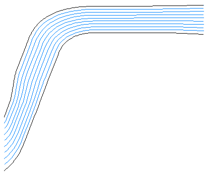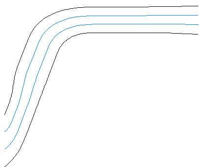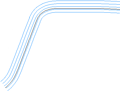“左边距离”为 10,“右边距离”为 5 可为一条曲线创建以下“沿”参考线: