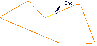 - 单击要切削的曲线位置。光标会变为刀状,并且曲线会变为黄色。