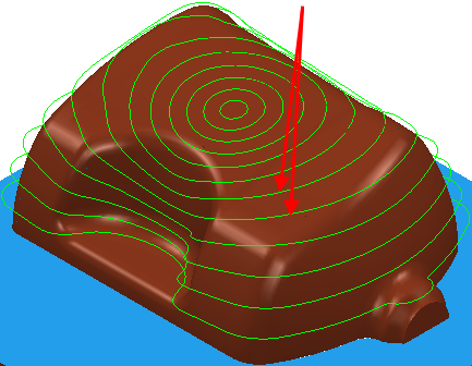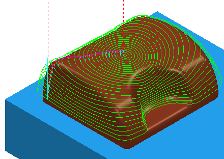轴向余量 - 输入刀具的偏移(仅在刀轴方向)。进行 2.5 轴或 3 轴加工时,输入正值可在水平面留下材料。
