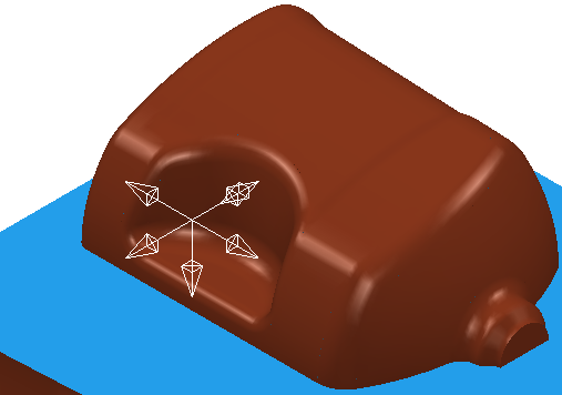 使用“点投影精加工”页面可将球形参考线投影到模型上。球心就是参考线的焦点,系统之后会对其进行加工。