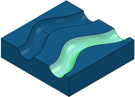 类似,但没有投影。曲面精加工只加工已选曲面,不会尝试加工任何其他曲面。