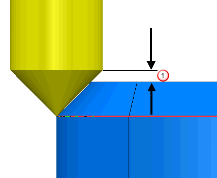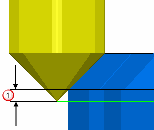 底部轴向深度 - 刀具延伸到平倒角底部下方的距离。