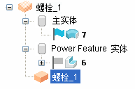 - 从上下文菜单中选择“修改”>“几何形体”。系统将显示部件的几何形体,并且装配树将会显示 Power Feature 和主实体: