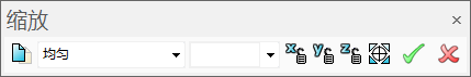 2. 要将任何轴的缩放系数锁定为 1,请在工具栏上单击所需的轴锁定按钮。例如,单击 可以锁定 X 轴的缩放系数。如果缩放圆弧并将任何轴的缩放系数锁定为 1,则圆弧将转换为曲线。工具栏将保持打开状态,以执行进一步的缩放操作。