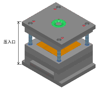 零件从此开口推出模具。开口通过将模具高度减去最大压入开口距离测量。如果更改此值,则最大压入开口距离也会更改。
