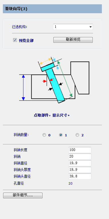 在向导中单击图像中的斜导柱,页面会更改。