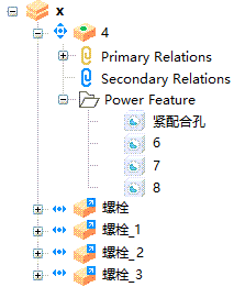新分支将增加到装配树。Power Feature 的状态由显示在特征旁边的图标指示: