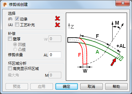 系统将显示“修剪线创建”对话框: