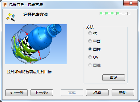 下面的瓶子示例显示了 360 度圆柱包裹的效果: