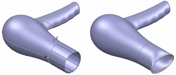 它可以通过围绕模型使用点、曲线、曲面或柔性框来控制。为获得最佳结果,请使用摹仿变形对形状进行细微修改,而不是大幅更改。